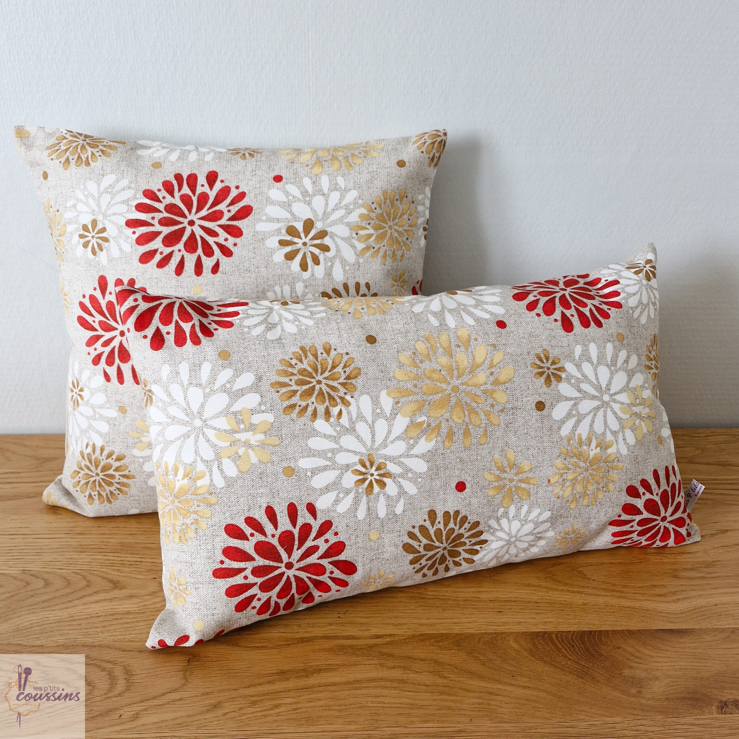 Ces housses de coussins sont confectionnées par les soins de la créatrice dans un très beau tissu d’ameublement. L’emplacement des motifs peut varier d’un modèle à l’autre.